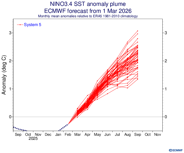 Oceanic drivers are also beginning to align toward a drier bias. The Indian Ocean Dipole is currently showing a slight positive signal, which historically correlates with reduced rainfall across southern Australia during the winter and spring months. At the same time, climate models are increasingly indicating a relatively rapid transition toward El Niño conditions during late autumn or early winter.